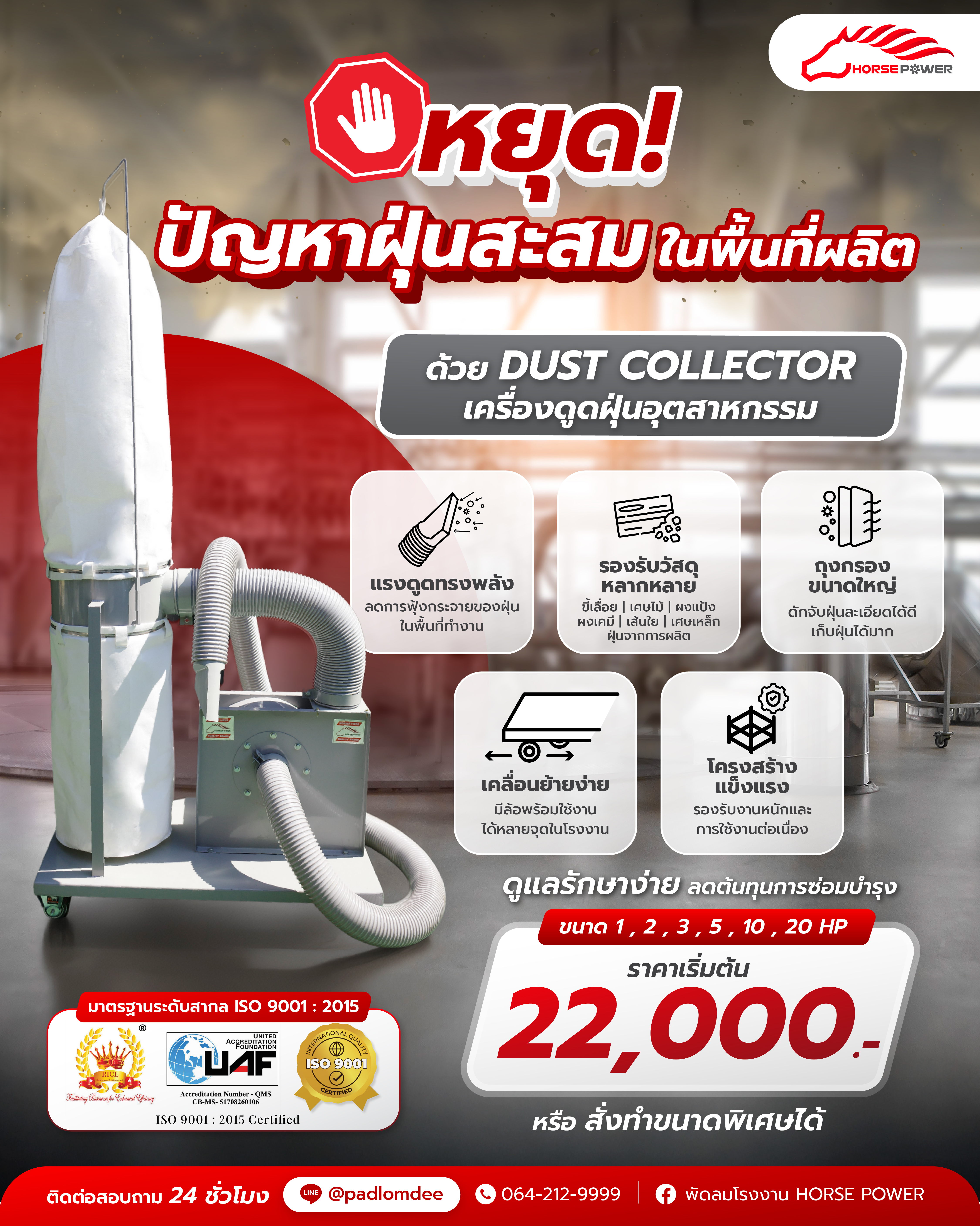 ผู้เชี่ยวชาญออกแบบ ผลิตและจำหน่ายพัดลมอุตสาหกรรม พัดลมโรงงาน HORSE POWER