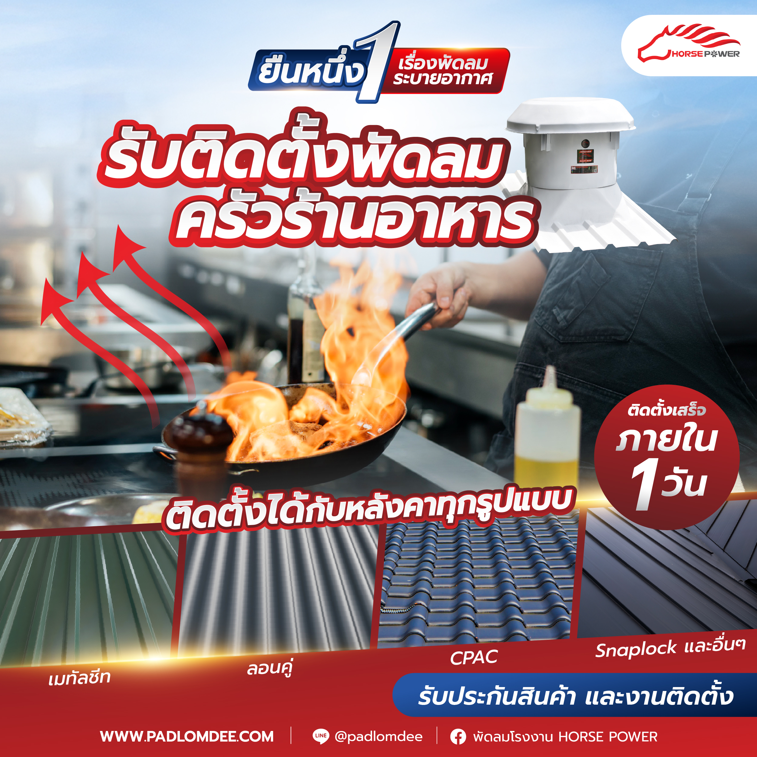 • ผู้เชี่ยวชาญออกแบบ ผลิตและจำหน่ายพัดลมอุตสาหกรรม พัดลมโรงงาน HORSE POWER
