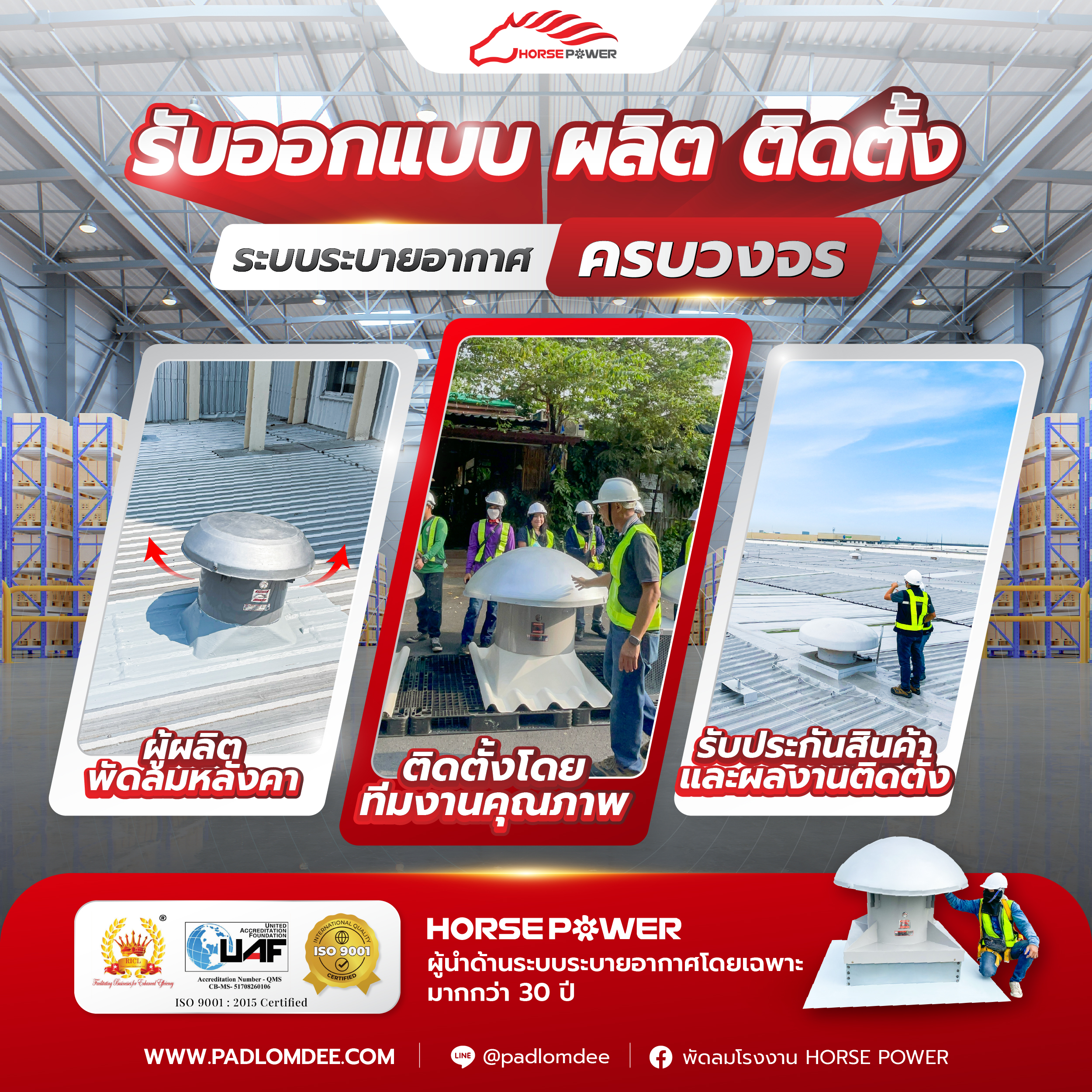 • ผู้เชี่ยวชาญออกแบบ ผลิตและจำหน่ายพัดลมอุตสาหกรรม พัดลมโรงงาน HORSE POWER